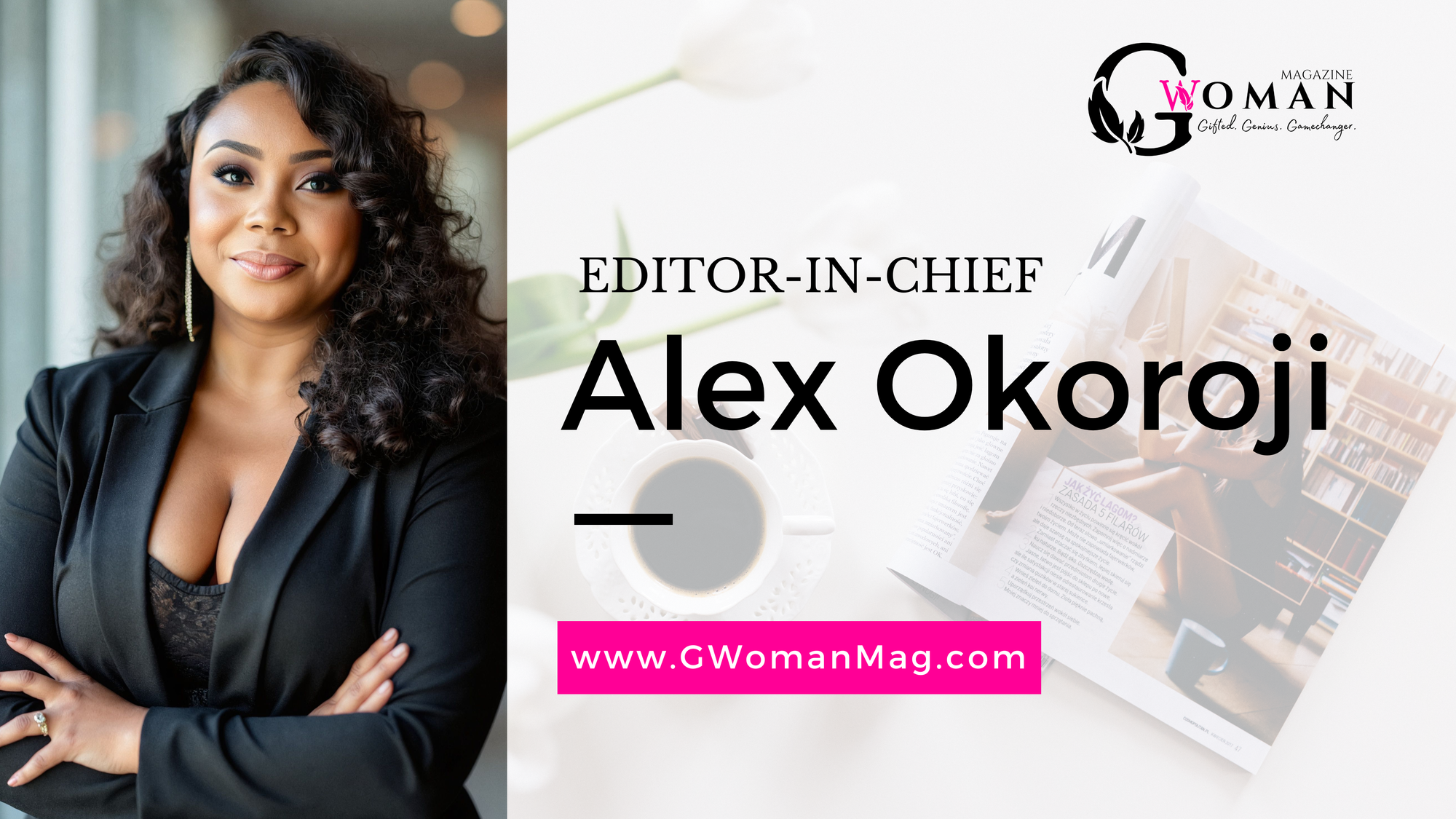 Alex Okoroji is Editor-in-Chief of G-Woman Magazine. She is a Nigerian actress, writer, broadcaster, communication specialist, and creative consultant who has spent two decades at the intersection of art, media, and entertainment. A dynamic polymath in the creative industries, she has built an extraordinary career as a performing, literary, and visual artist—moving fluidly between television, film, radio, stage, digital media, and print. Learn more about her at www.AlexOkoroji.me.