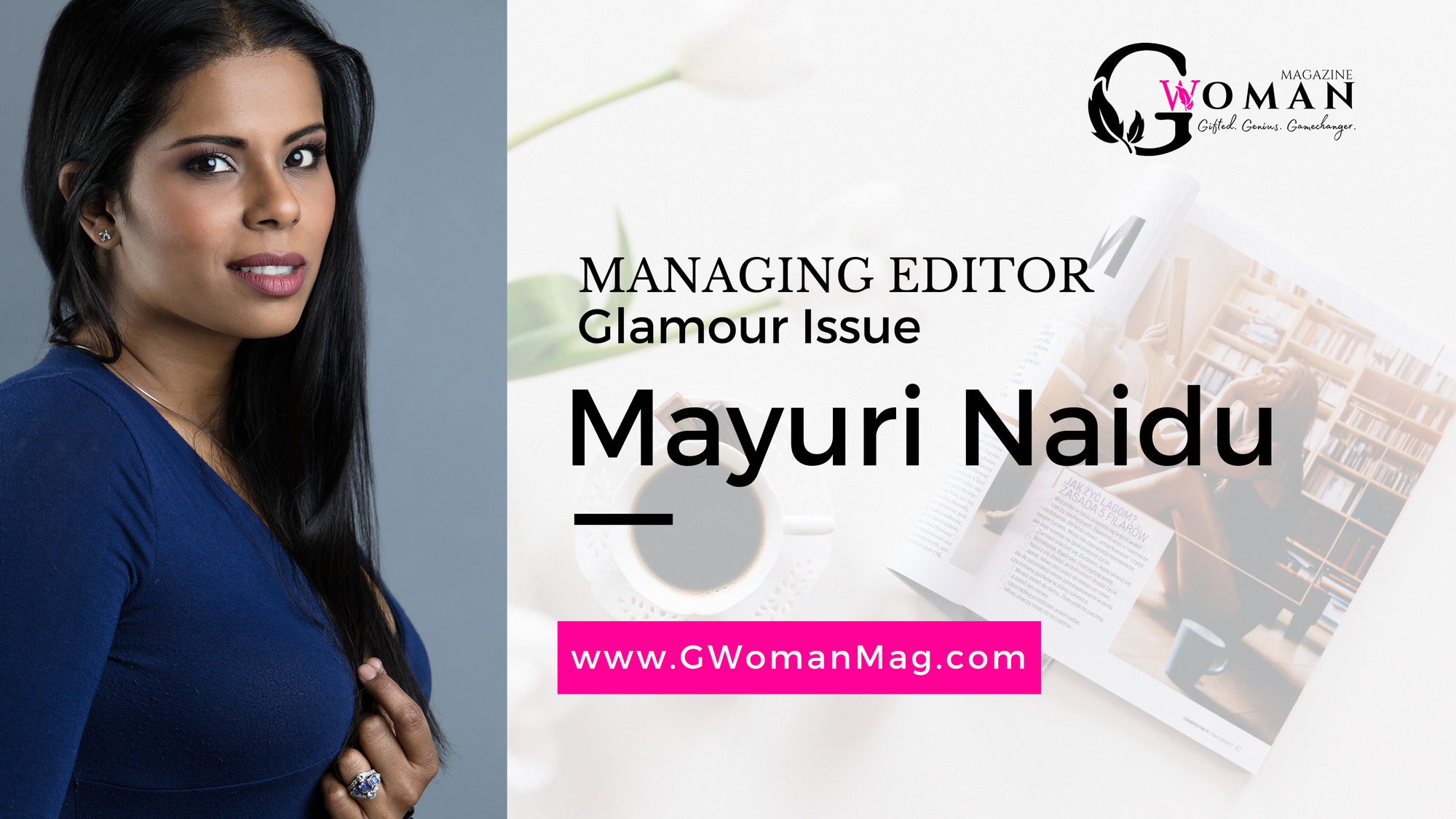 G-Woman Media publishes its online magazine to readers around the world through its official website www.GWomanMag.com plus a quarterly digital cover issue (and annual print issue).