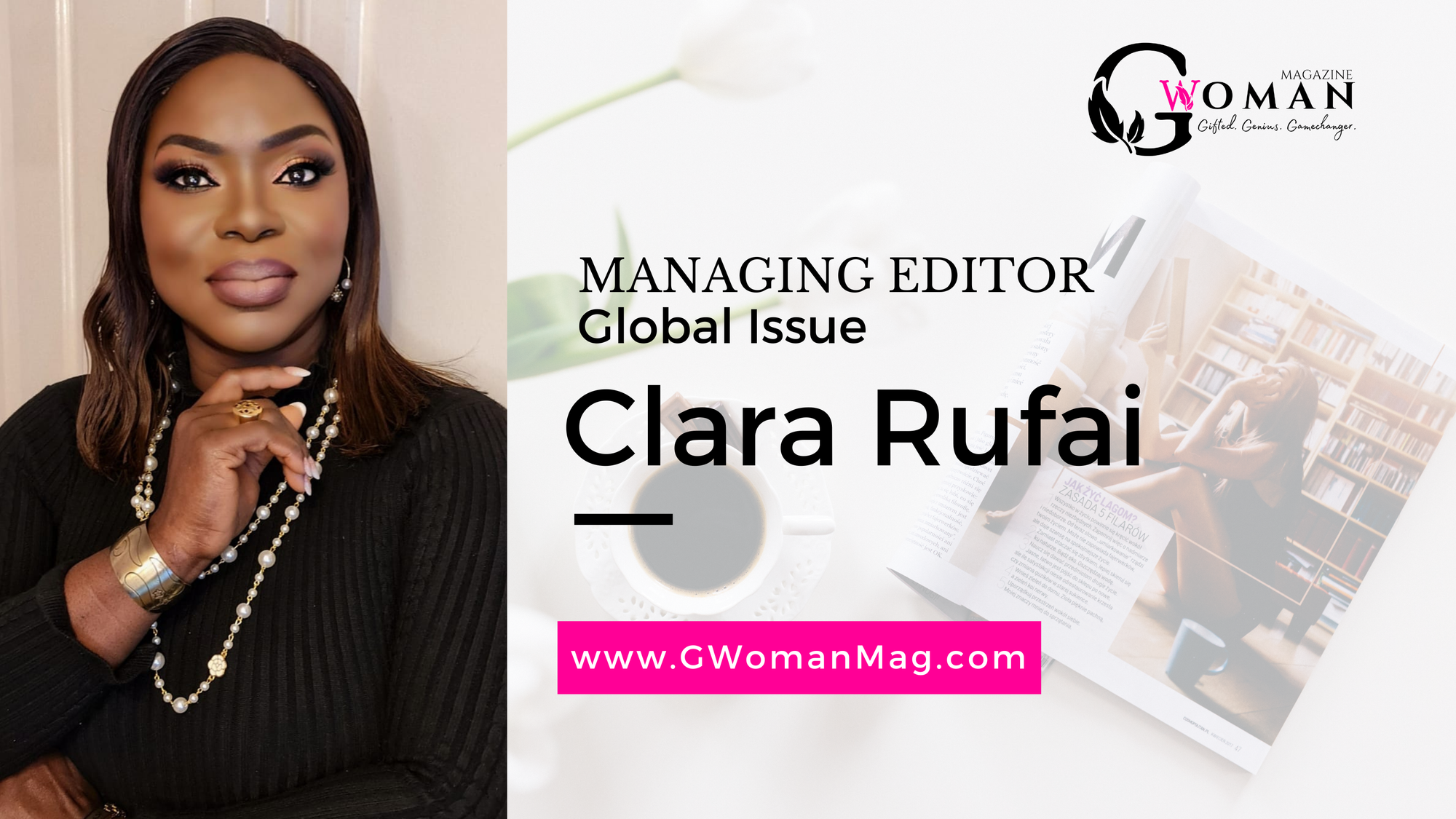 Clara Rufai is the Managing Editor (Global Issue). She is a speaker, writer, podcaster, author, coach, compliance professional, and corporate lawyer. She co-hosts "The G-Spot" on G-Woman Radio, hosts the Shine Capsules Podcast, and is the author of 3 books. Learn more about her at www.ClaraRufai.com.