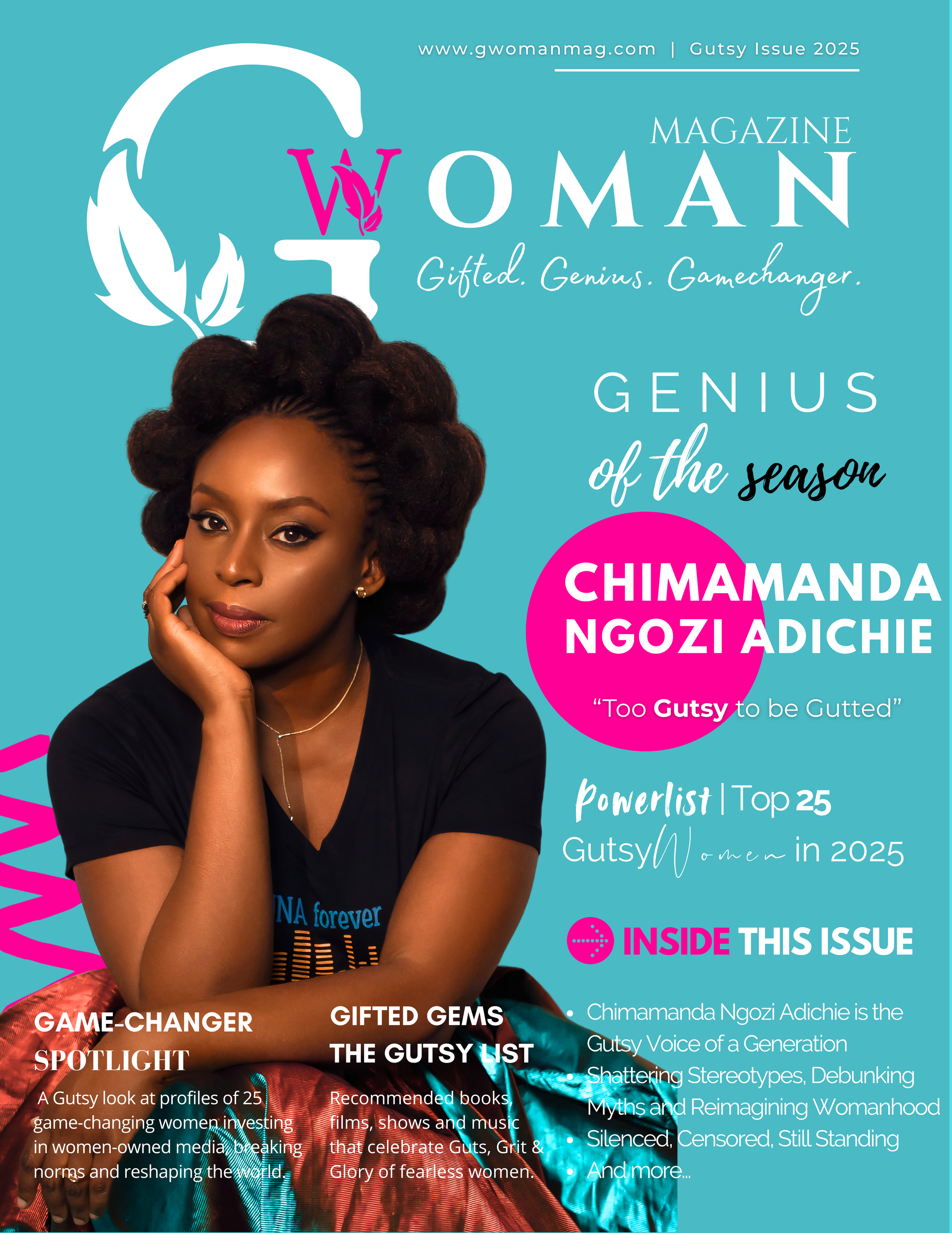 In this Gutsy Issue 2025 Edition of G-Woman Magazine™, we celebrate Chimamanda Ngozi Adichie not just as a literary icon but as a woman who exemplifies what it means to live audaciously. She is proof that words, wielded with courage, can reorder societies and reimagine possibilities.